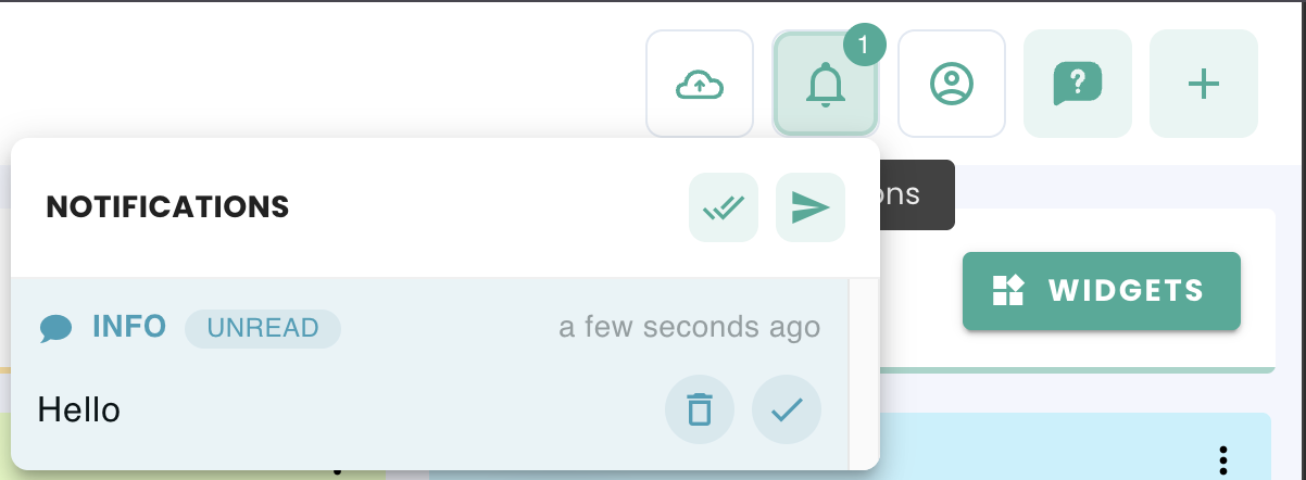 Notifications can be accessed at any time from the bell at the top of the screen.