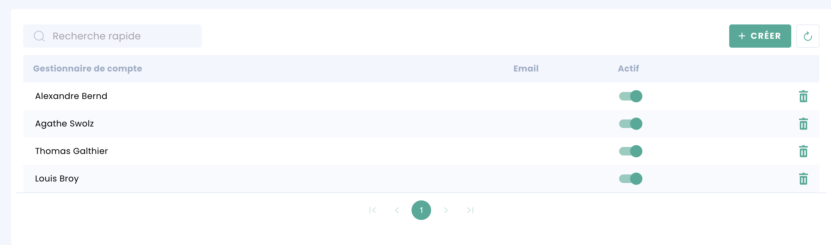 - Pour créer un gestionnaire de compte, cliquez sur le bouton "Créer" :
