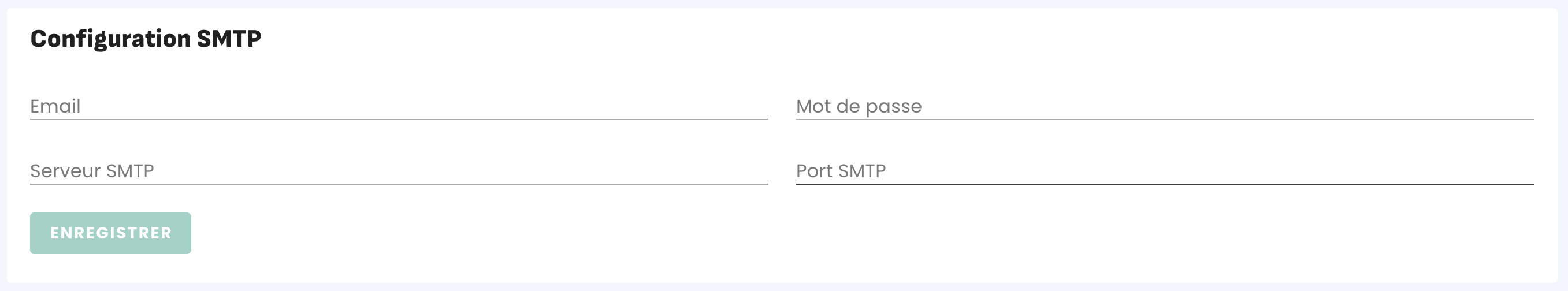 Faites défiler jusqu'à la section Configuration SMTP et saisissez vos paramètres SMTP. Vous pouvez généralement trouver vos paramètres SMTP à partir de votre système de messagerie en recherchant "Outlook STMP" ou "Office 365 SMTP" par exemple :