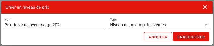 Nommez ce niveau de prix, par exemple "Prix de vente avec marge 20%".