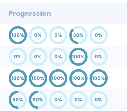 Les indicateurs de progrès s'affichent dans votre liste de bons de commande dans la colonne "PROGRÈS". Cette fonctionnalité permet de surveiller l'évolution de vos ventes depuis la préparation de la commande jusqu'au paiement. Chaque indicateur est représenté par un pourcentage de progression de 0 à 100%. Ces indicateurs sont au nombre de cinq.