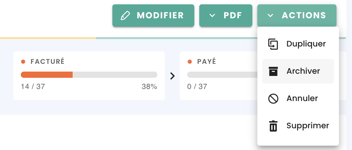 "Archivé" est un statut disponible pour vos bons de commande et vos achats fournisseurs.