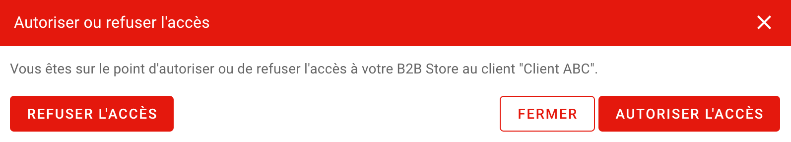 Pour accepter ou refuser la demande, rendez-vous dans le menu B2B Store > Clients et cliquez sur "Voir les demandes d'accès en attente" :