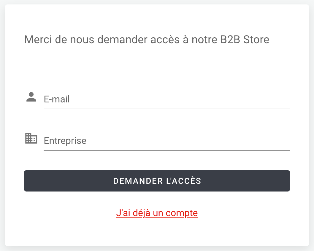 Vous pouvez activer la demande d'accès depuis la page de connexion de votre B2B Store. Cela peut être utilisé par un client ou un prospect pour demander l'accès à votre boutique B2B.