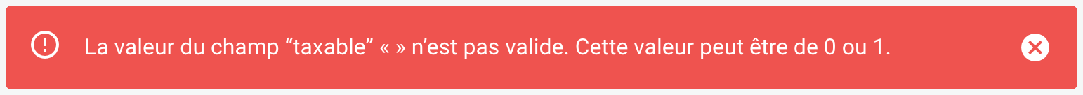 Exemple avec une cellule vide dans la colonne "taxable".